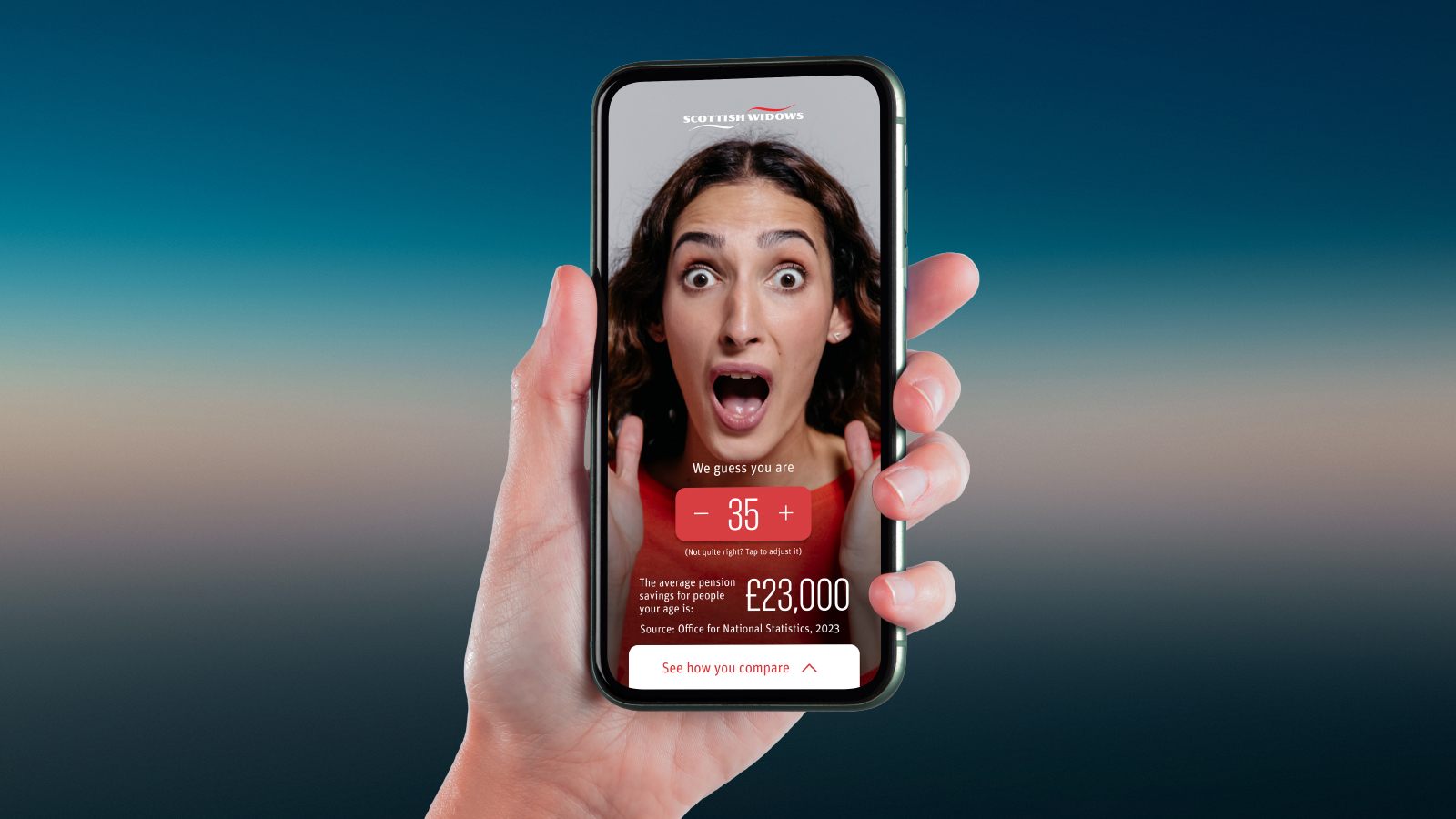 With a simple look in the digital mirror at pensionmirror.co.uk, the tool will guess a user’s age with amazing accuracy (or occasionally, comical over - or under-estimation!), before providing the average pensions savings figure for UK savers of that age. Spurred on by this social proof, Scottish Widows pension scheme members can then download the Scottish Widows app in a simple tap, to check their pot and see how they stack up.