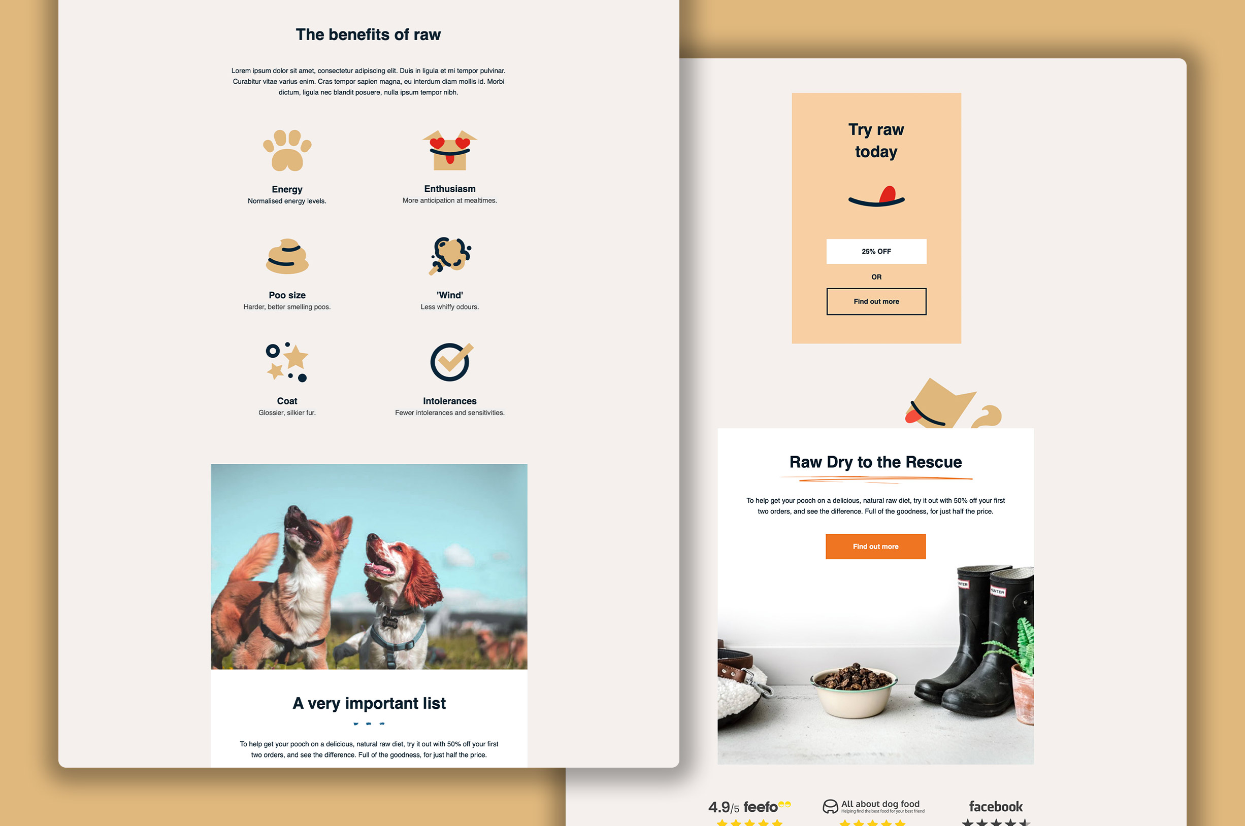 These user-generated testimonials also showed how lively, fit, and glossy raw-fed dogs are, demonstrating to new customers that the evidence was already there to see.