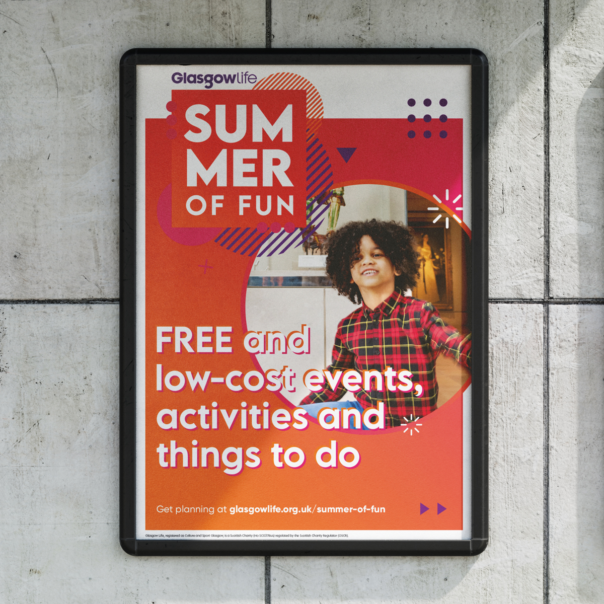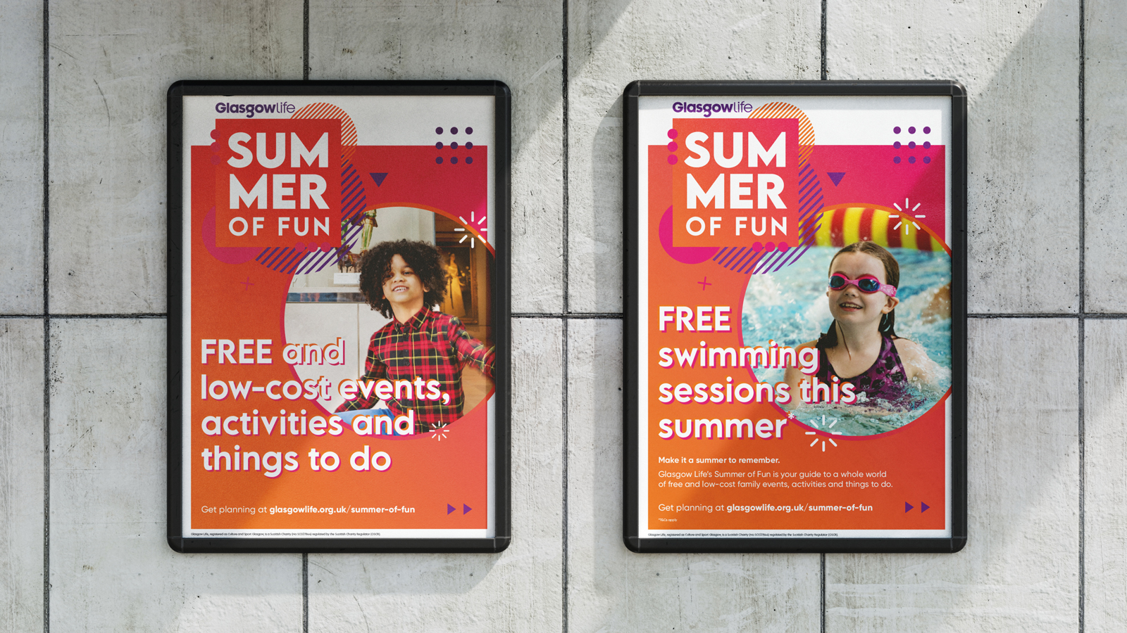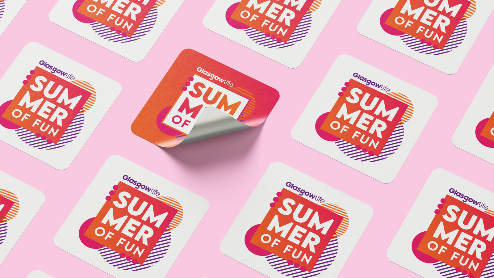 We created a logo lock-up for the Summer of Fun, incorporating the Glasgow Life logo and layering up bright colours and bold shapes.