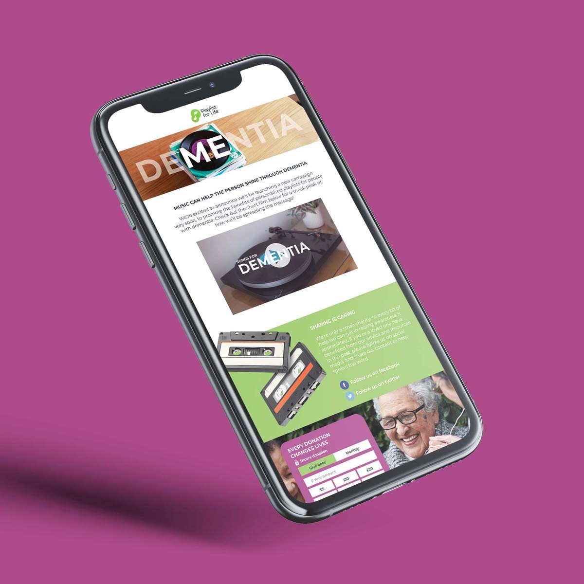 We knew that we needed to reach as many people as possible with an emotive and meaningful message on a very small budget. We created a comms plan detailing a sizeable audience that could be reached via social, email, and partnership marketing, then shared our message via Playlist for Life’s comprehensive partner base, audience, and employees.